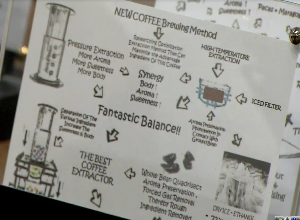 향미 보존과 거친 성분을 제거하기 위해 핸드밀의 날 간격을 넓게 하였고 홀빈을 4등분으로 잘라 가스배출면적을 넓게 해주는 방식을 적용했다. 또 크레마의 거친 느낌을 보완하고자 스테이션의 특수 거름망 필터를 사용하되, 트라이탄 소재로 직접 만들어 접목시켰다. 덕분에 브라운슈거, 플럼, 슈가케인 등의 플레이버와 코를 통해 지속되는 커피펄프의 애프터 테이스트를 심사위원에게 선사했다.