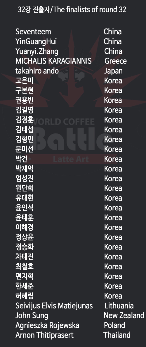 WYBC LatteArt Championship 전반기 대진표 발표