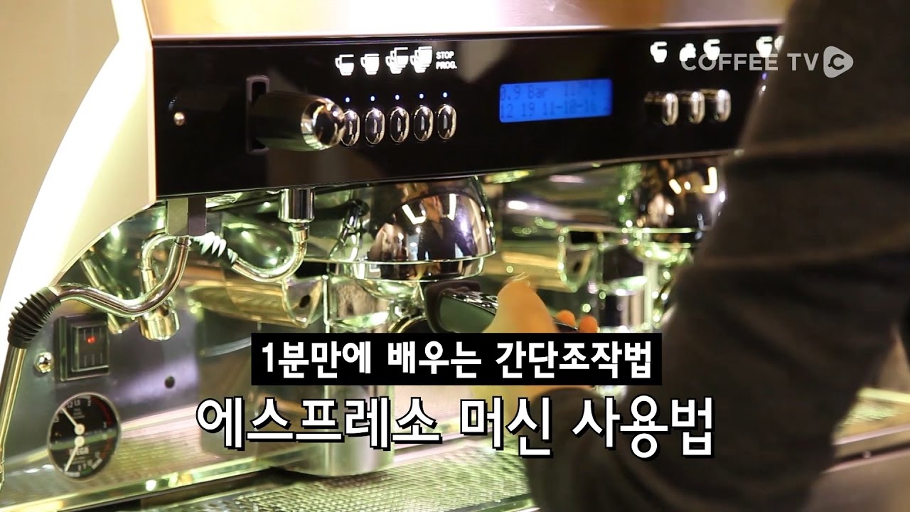 여러분 안녕하세요! 오늘은 에스프레소 머신을 사용하는 방법에 대해 배워보겠습니다. 일정한 압력을 유지해주는 반자동 머신은 카페에서 보편적으로 사용되고 있는데요. 그라인더와 머신이 분리된 덕분에, 원두커피에 열이 직접적으로 가해지지 않아 향미 변화가 적은 에스프레소를 추출할 수 있답니다. 하지만 원두의 분쇄도, 투입량 등 다양한 변수를 바리스타가 직접 조절해야하는만큼 바리스타의 역량이 꽤!!!! 중요한데요. 오늘은 에스프레소 머신의 첫걸음! 포터필터 장착부터 커피 한 잔 만들기까지~  커피TV와 함께 배워보실까요~?